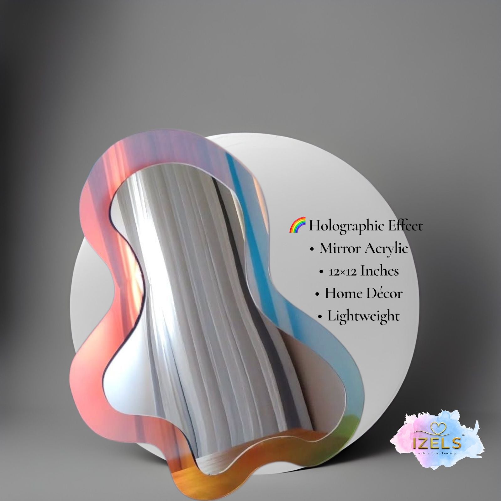 Premium mirror acrylic with a stunning holographic effect that reflects light beautifully, adding a modern, radiant glow to any space.