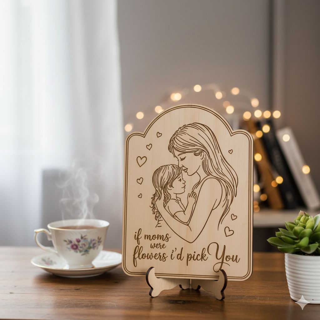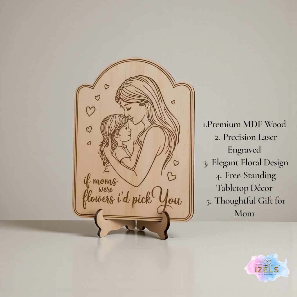 Celebrate a mother’s unconditional love with this beautifully crafted wooden engraved gift for mom. Featuring an elegant mother-and-child illustration paired with the heartfelt quote “If moms were flowers, I’d pick you,” this décor piece is a timeless expression of gratitude and affection. Carefully engraved on quality wood, it adds warmth and emotional value to any space, making it a meaningful keepsake she’ll cherish forever. Perfect for Mother’s Day, birthdays, or simply to say thank you for all her love.