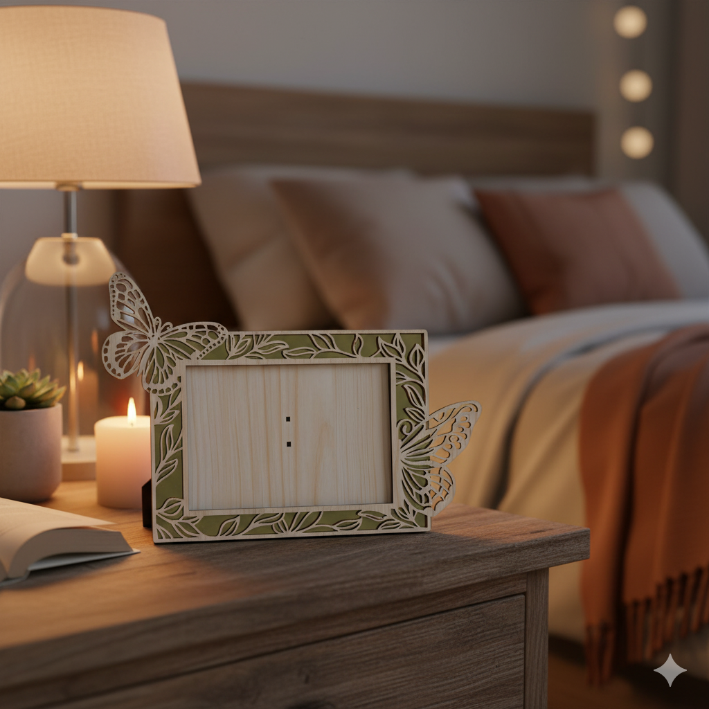 Izels Rectangle Butterfly Shape Photo Frame - Wooden