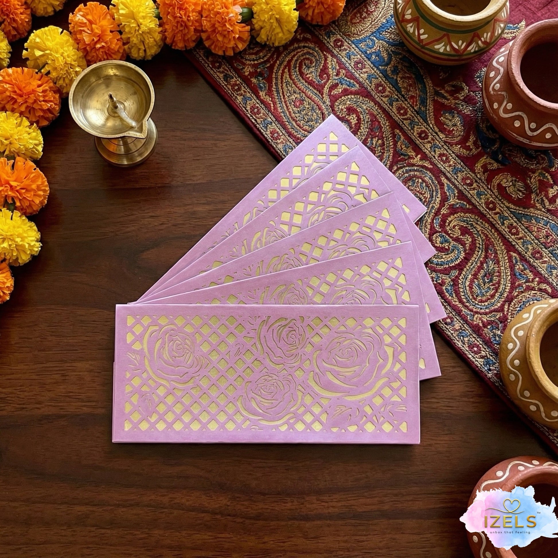 Shagun Lifafa - Lavender & Golden Floral design (10 Pcs)